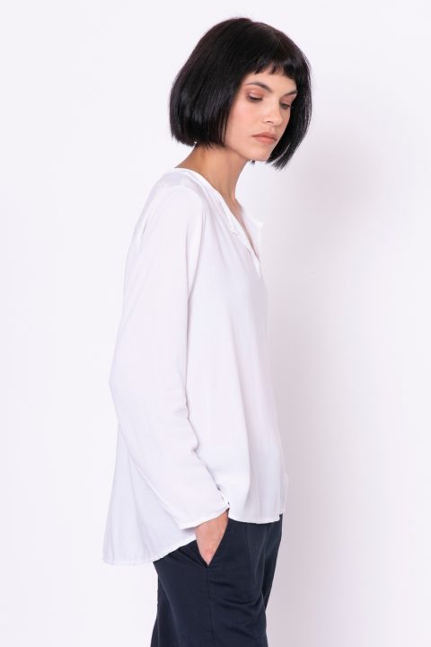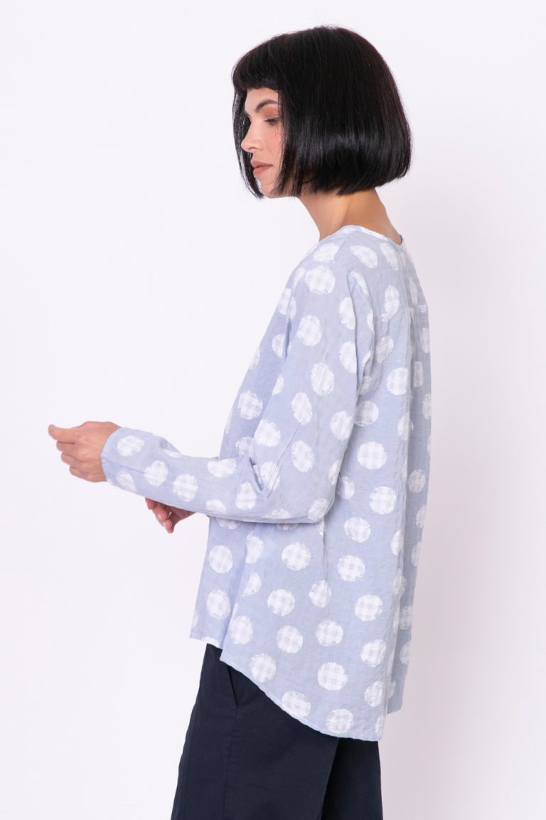 | חולצת אריג נהדרת שמתרחבת בגזרת A בדיוק בקו הירכיים ומשם היא גולשת מעט בשני שפיצים מחמיאים. היא מצויינת לגוף הנשי הבנוי עם אגן רחב וחלק עליון צר. |